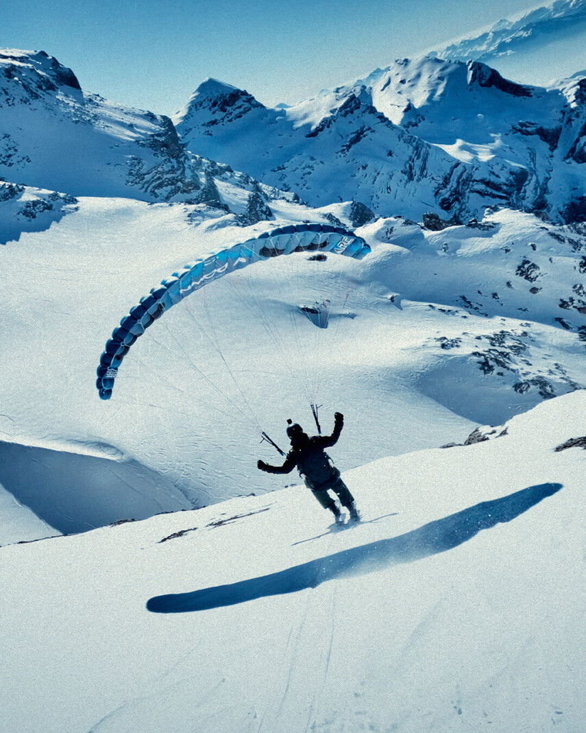 Ja, ich wollte unbedingt wieder freeriden, nur halt nicht vom Steilhang springen, sondern fliegen. Also habe ich erst meinen Paragliding-Schein gemacht und dann ein Jahr später mit Speedriding angefangen.