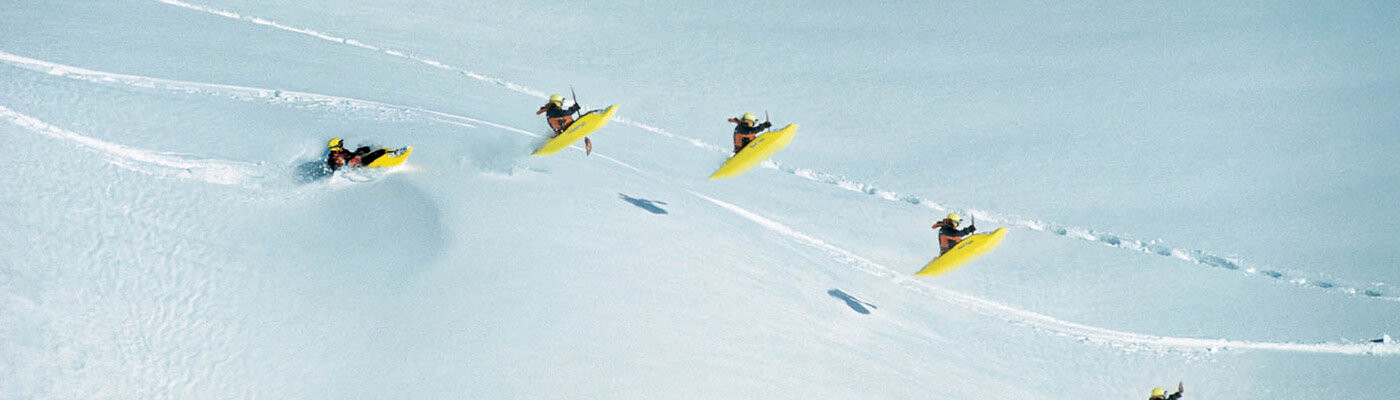 Kajaks auf der Skipiste? Schon gesehen? Aber noch nie so radikal. Eine neue Sportart ist geboren: Freeride Kayaking.
