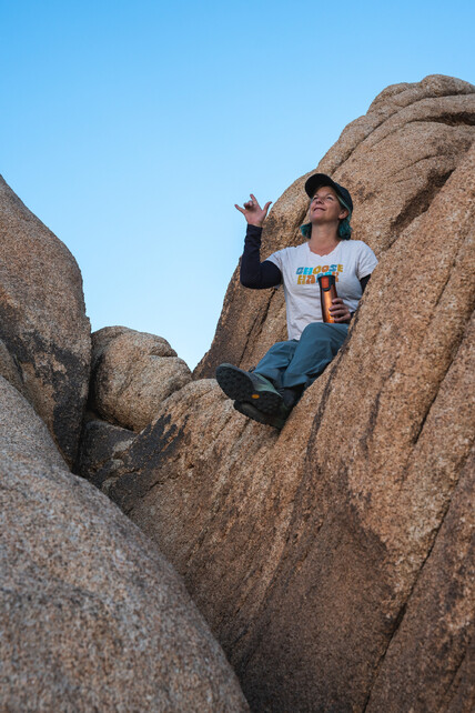 Mit elf Jahren hatte ich gerade alles verloren, was ich jemals gekannt hatte. Meine Mutter war gestorben und ich musste meine Heimat verlassen. Von Nevada nach Südkalifornien zu ziehen, kam einem Kulturschock gleich. Es war mein Glück, dass mich meine Verwandten aufnahmen, aber ich hatte Schwierigkeiten, meinen Platz zu finden. Ich war einsam und vermisste meine gehörlosen Freunde. Meine Familie wusste, dass ich die Natur liebe, deshalb durfte ich an Outdoor-Camps und Wanderungen mit anderen Kindern aus ihrer Kirchengemeinde teilnehmen. Und so kam ich eines Tages nach Joshua Tree und habe mich sofort verliebt! Joshua Tree hat mich sofort an meinen geliebten Red Rock Canyon erinnert, den ich als Kind mit meinen gehörlosen Freunden erkundet hatte. Das Heimweh ließ nach und in der Natur zu sein half mir dabei, die Veränderungen in meinem Leben zu bewältigen. Hier konnte ich meine Balance, Ruhe, Weisheit und Stärke wiederfinden, einfach ich sein und eine gute Zeit haben. Joshua Tree hat eine unvergleichliche Magie.