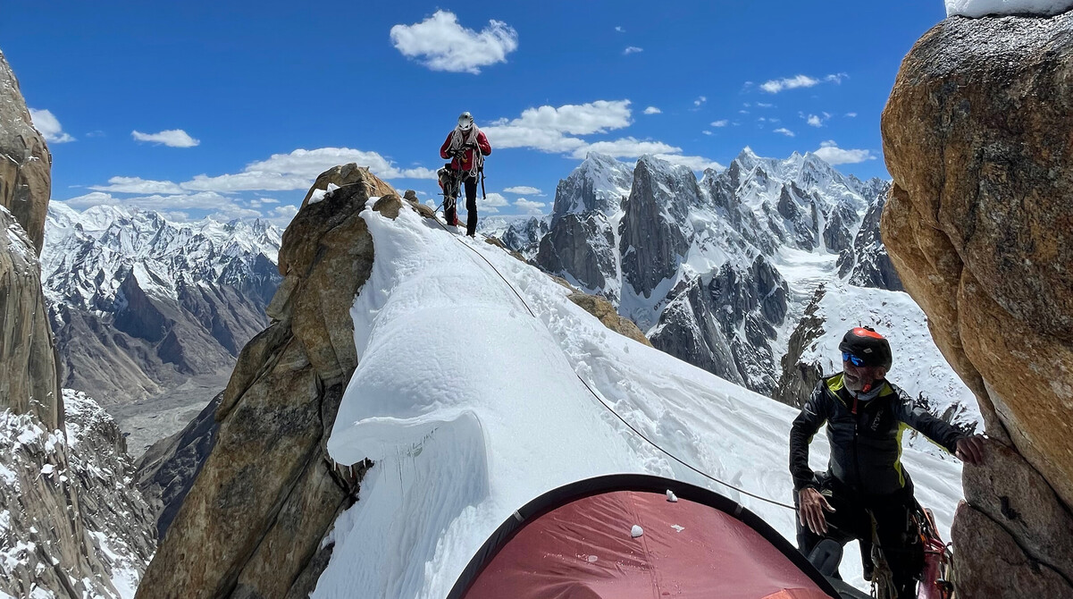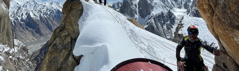 Vielleicht ist das der Grund, warum der katalanische Kletter-Profi Edu Marín seinen 70-jährigen Vater mit auf Expedition ins Karakorum nimmt. Zusammen mit Bruder Alex wird die Reise zu den Trango Towers eine echte Familienangelegenheit. Nach 13 Jahren will Edu die Route “Eternal Flame” am Nameless Tower wieder zum Brennen bringen. Eine geschichtsträchtige Route: 1989 von den Koryphäen des Sports Wolfgang Güllich und Kurt Albert etabliert, gelang den Brüdern Alexander und Thomas Huber die erste Rotpunktbegehung von Eternal Flame.